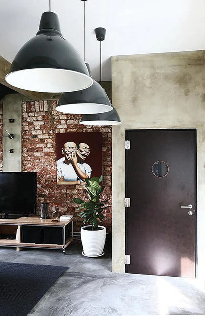 Industrial design originated from old factories and warehouses, where exposed concrete and brickwork were structural necessities rather than decorative features. Keeping these materials visible preserves the authentic industrial look and feel.