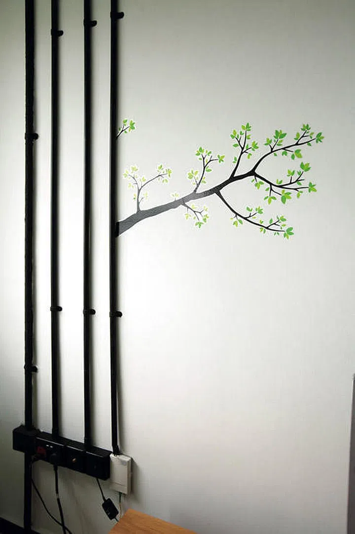 ”Branches” extending from the electrical trunking turn an eyesore into pleasing aesthetics.