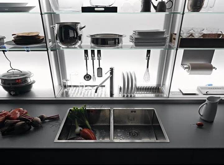 The modular kitchens by well-known Italian brand Varenna by Poliform, availabe at Space, integrates a wide array of smart and stylish storage systems.