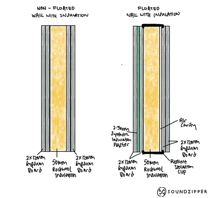 An even better option to acoustically treat your walls is a cavity with insulation. Placing insulation such as rockwool and fibreglass into he cavity will mitigate this effect and provide more sound and heat insulation. Yup, this keeps the home cool, too!