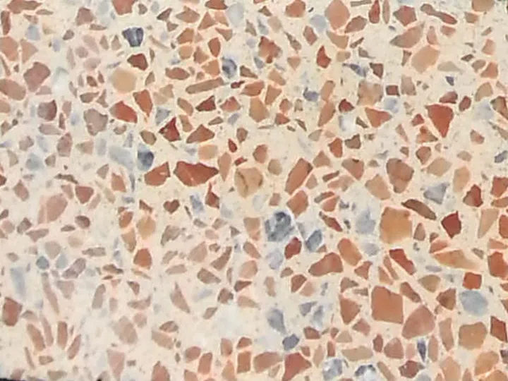 Terrazo can be cast on-site or pre-cast and applied in tile formats. They were used in public spaces and outdoor patios because of their hardiness and durability.