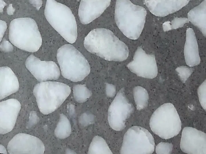 Designers can also play on proportion by using varying sizes of the chips used to create the material, such as with this countertop from Dzek.