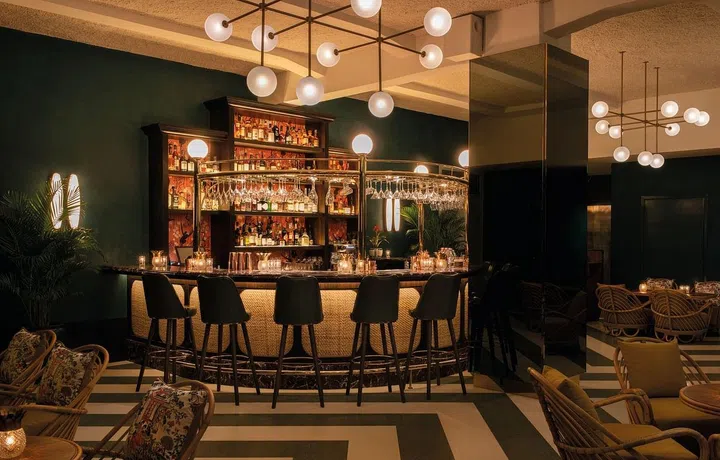 At Le Bon Funk, the latest Lo & Behold establishment to open in Club Street, motown music plays, as diners swirl and sip from a litany of natural wines. But despite the chatter at the bar, no one has to shout to be heard. A rattan ceiling held together by dark green wooden slates helps to temper the noise. The unorthodox choice of material, contrary to the sound-absorbing ceiling tiles favoured by other dining outlets, was one that Elita Ong, lead interior designer of and partner at local design studio Foreign Policy, was keen to explore. “We did not want to apply a typical acoustic treatment to the ceiling and started sourcing for materials that were porous, and rattan fit the bill – not just functionally, but also in elevating the tropical textures of the space,” says Ong.