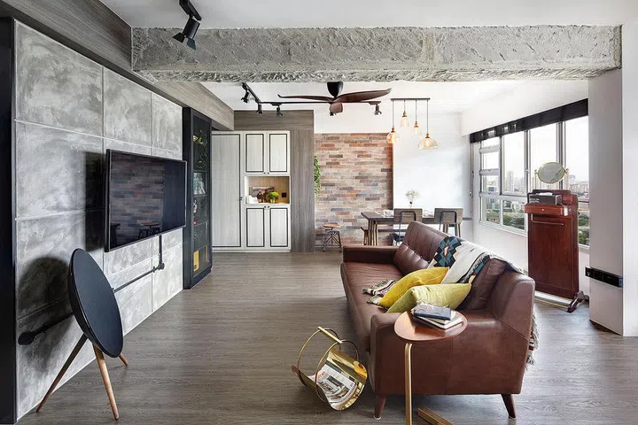 This juxtaposition of the raw and the refined infuses the room with a sense of urban sophistication.