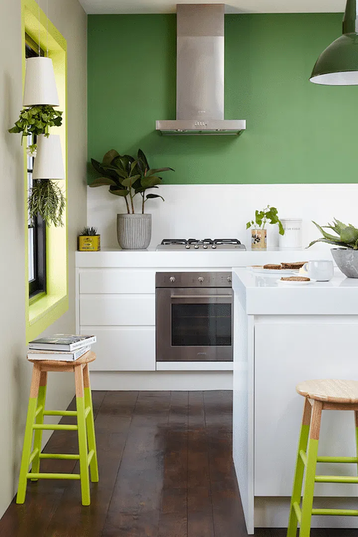 While there’s no hard or fast rules when it comes to picking colours for your kitchen, a safe option is to go with refreshing shades.