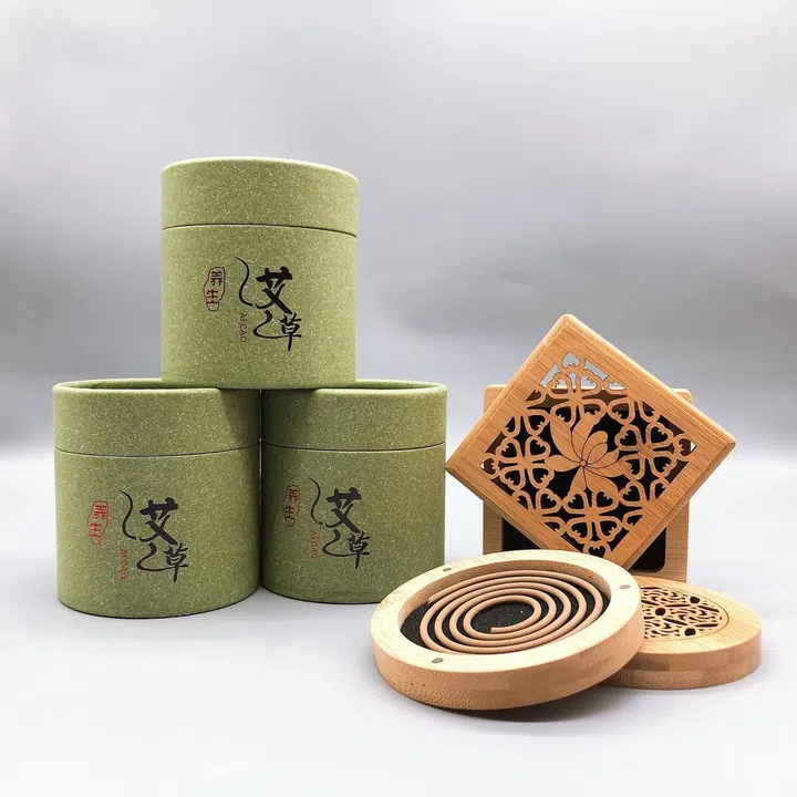 Maybe you're a fan of the traditional oriental solution? Behold the Artemisia argyi coil incense, made from the plant commonly known as silvery wormwood or Chinese mugwort known in Chinese as àicǎo (艾草) or ài yè (艾叶) or ài hao (艾蒿) and in Japanese as gaiyou. It is used in herbal medicine for conditions of the liver, spleen and kidney.