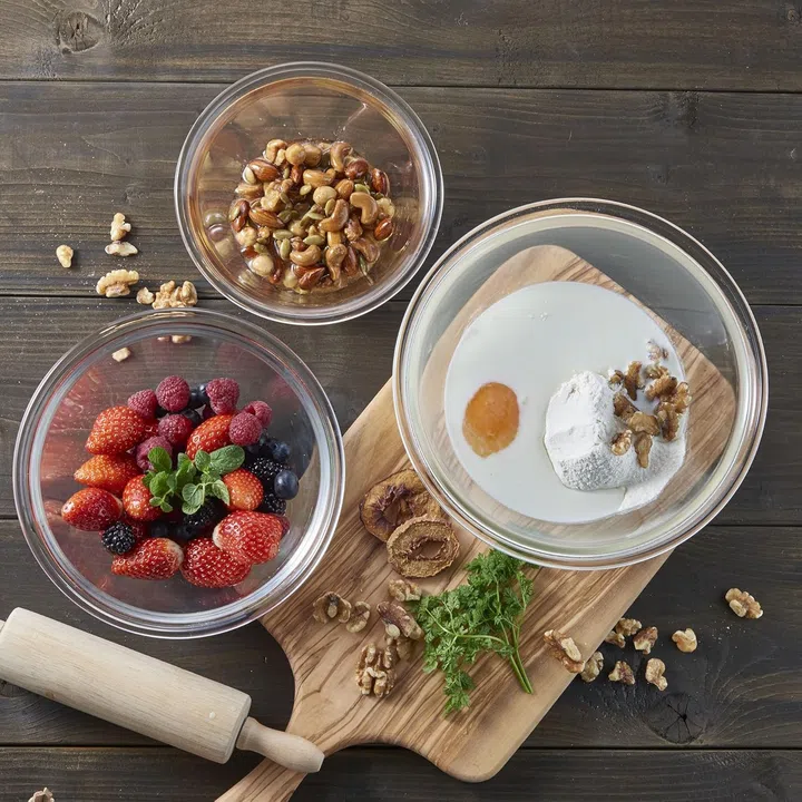 Durable and crystal-clear, these heat-resistant mixing bowls are perfect for stirring, whisking, or serving, and their versatile sizes make them a must-have for everyday cooking or festive baking this holiday season.