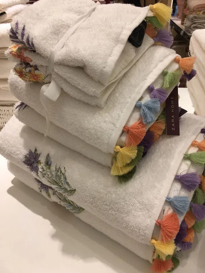 3. Towels with multi-coloured tassel trim! I don't know if they are practical, but they will really prettify the bathroom.