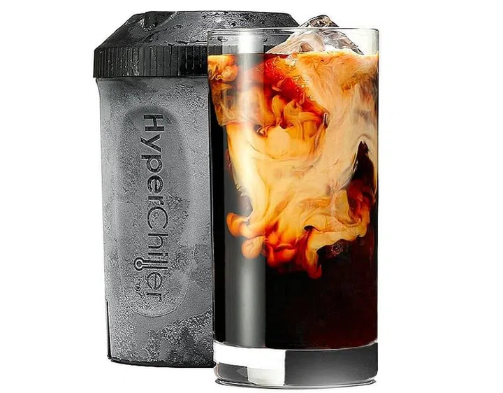 Turn fresh hot coffee into perfect iced coffee in one minute with Hyperchiller. To start, you will have to freeze the container for up to 12 hours. Once that is done, you pour your hot coffee into the stainless steel chamber and allow the surrounding ice to cool your coffee by up to 55 degrees Celsius – all within 60 seconds!
