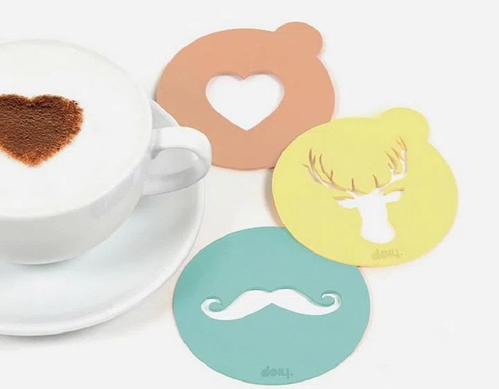 Get creative with your cup of joe with a modish design using this series of acrylic cut-out templates. Hold the stencil over your coffee cup and sprinkle chocolate, cinnamon or a topping of your choice!
