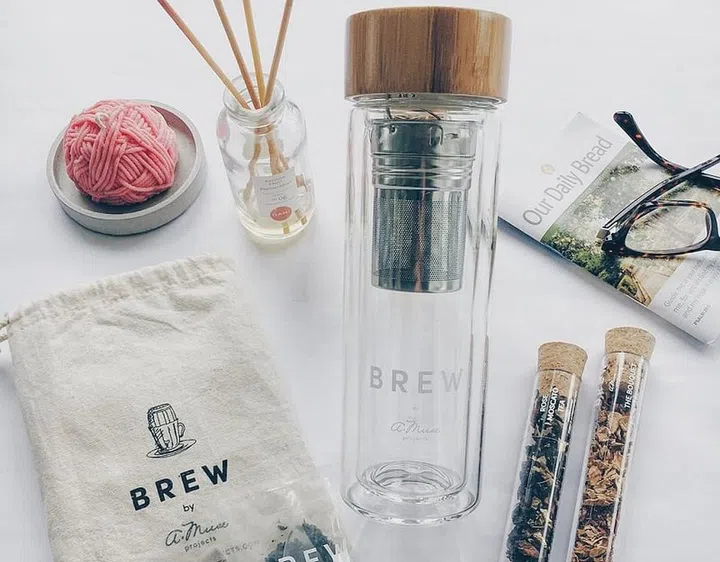 This bottle is perfect if you love tea and are constantly on the move. It has a bamboo lid, a double-glass wall and is equipped with a 2-in-1 infuser which allows you to brew loose tea leaves or infuse fruits.