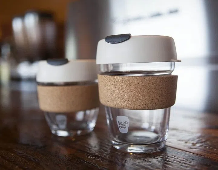 Go green by using a recyclable cup when you take away your coffee. The glass coffee cup is enveloped in a sustainably sourced thermal cork band, elevating the hip quotient while keeping your fingers safe.