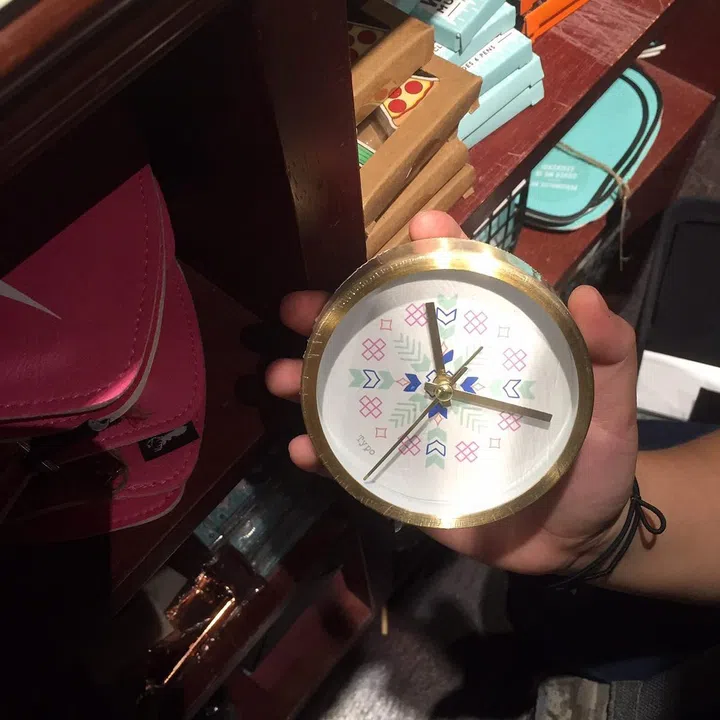 This round clock ($24.99) is both stylish and practical, we like the unique geometric prints on the face.
