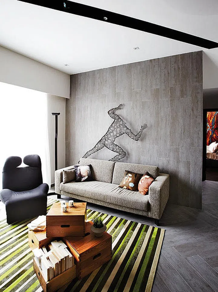 For a warmer feel, go for subdued hues of grey and cosy it up with arty cushions and wooden accents.