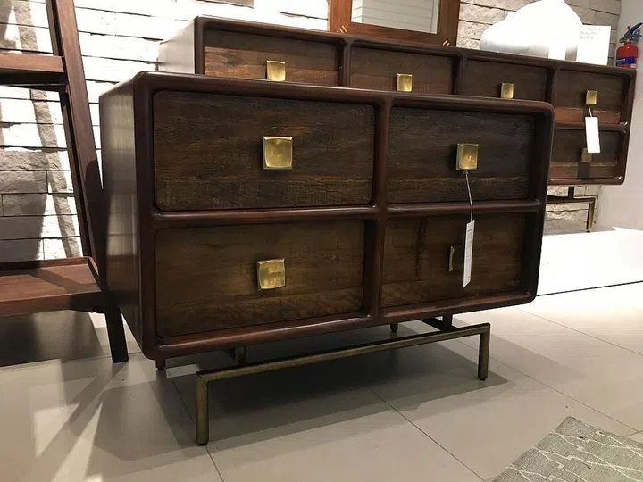 4. This console has really balanced proportions and wood grains. The antique brass finish for the legs and handles are a nice touch.