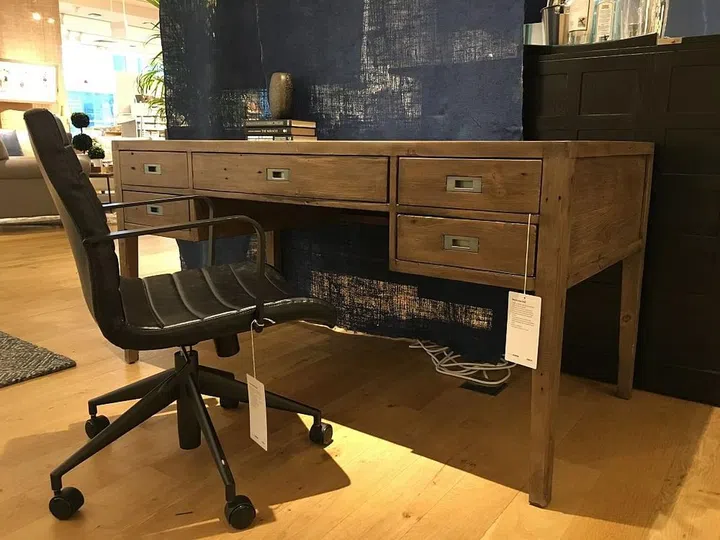 7. This desk looks a bit old-school, and trendy at the same time. It's made of FSC-certified solid pine reclaimed from old shipping pallets, which makes it eco-friendly.
