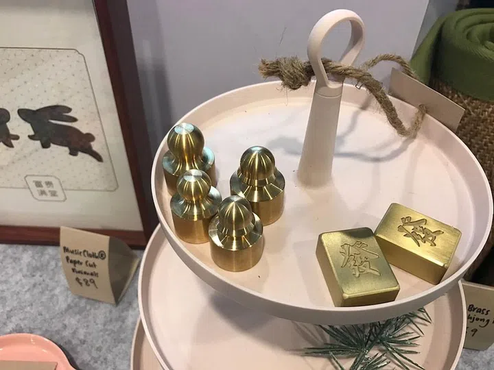8. Jia brass paperweights, from $42, and brass mahjong tile, $69