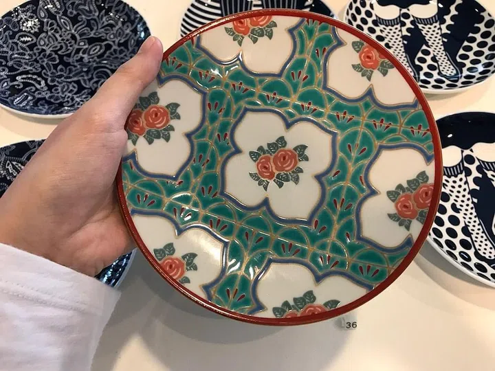 These handpainted porcelain plates feature textured grooves that give them an interesting tactile quality.