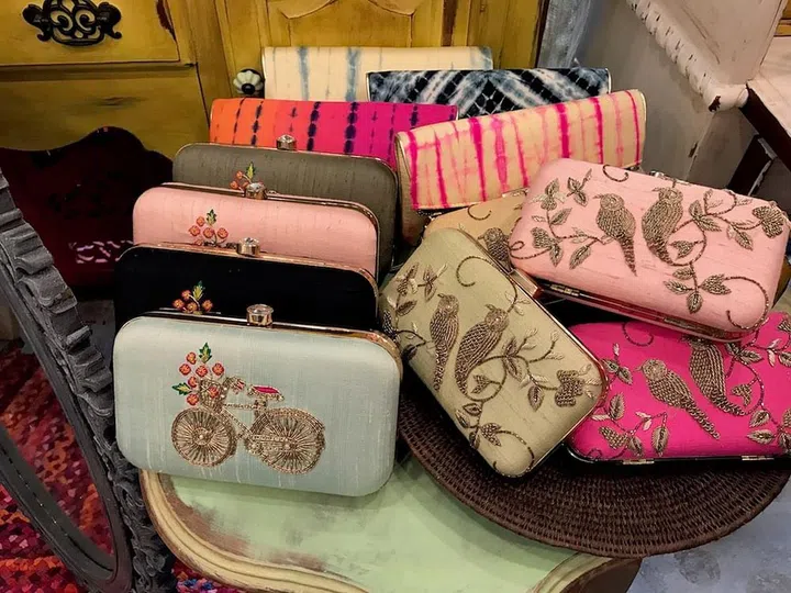 Made in India from raw silk and zari thread spun from real gold, these beautiful clutches will make any lady happy.
