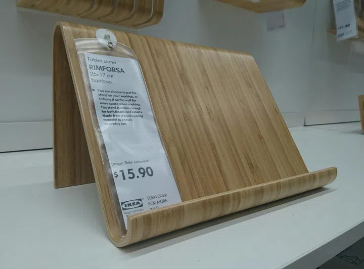 So simple, but so functional - the Rimforsa tablet stand is made of eco-friendly bamboo and is a mere $15.90! Use it also to hold your recipe books in the kitchen.