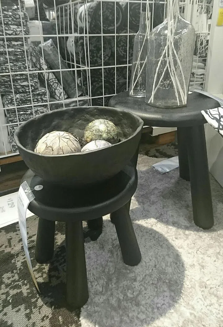Svartan is a limited edition collaboration Ikea had with fashion design students in India, and it has resulted in a moody, edgy collection of furniture such as this side table and stool ($39 and $59). The stool is sandblasted, which results in an uneven surface.