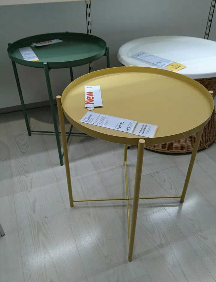 We've seen expensive designer versions of this table - Ikea's Gladom tray table is an unbelievable $29.90 each, in on-trend pastel shades of mustard and green.