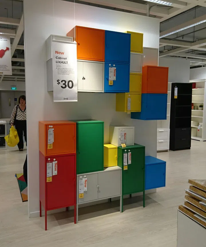 Perk up your walls with the colourful Lixhult metal storage cubicles that you can put together like lego pieces. Each of the three sizes comes in two colours, from $30 each.
