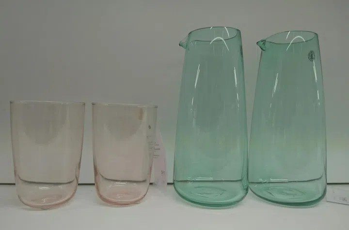 We love the thinness and barely there blush of colour on these Intagande carafe and glasses. The carafe is $12.90.