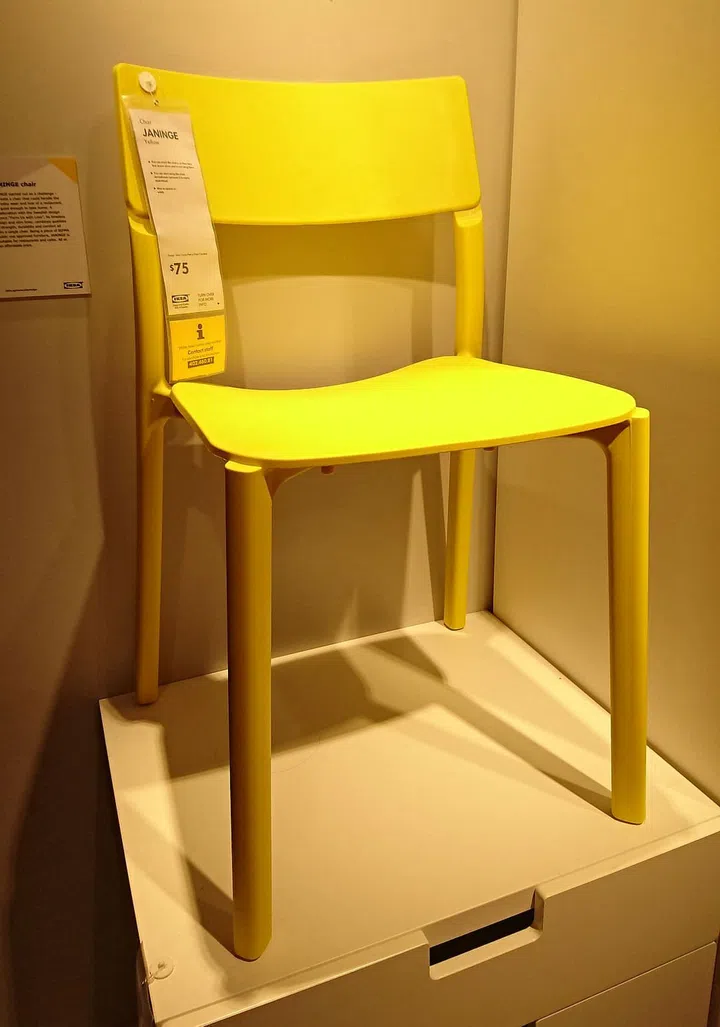 The moulded Janinge dining chair ($75) supports up to 110kg of weight, and is stackable, too! We like the bright sunny yellow this armless version comes in.