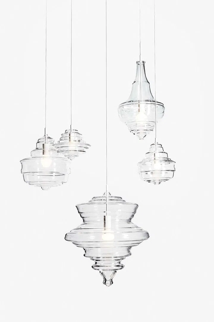 Hang the oversized Neverending Glory chandelier from Lasvit on its own, in a row, or at different heights to create a cluster in a modern space.