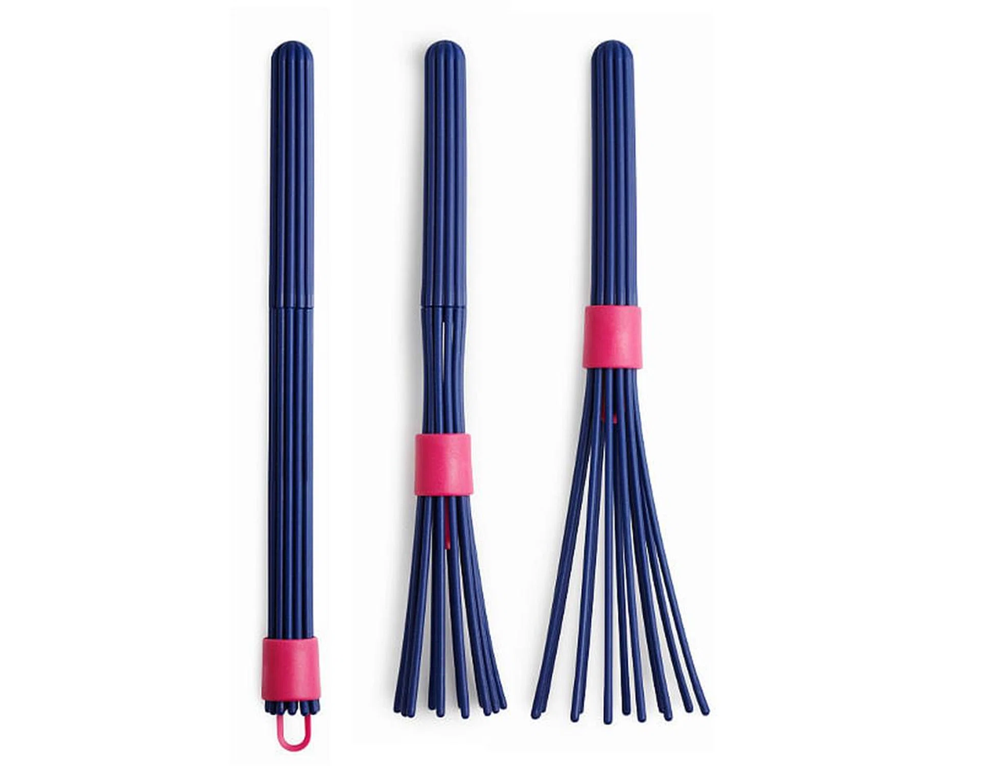 When you're not using it to whisk, slip the centre ring down and it’ll collapse into a sleek column for easy storage. But an even better idea is to just leave it on your countertop ─ it’ll enliven the kitchen with a sophisticated pop of colour.