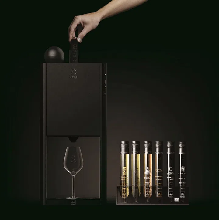 A D-Vine dispenser retails at $1,690, while each 100ml wine flacon retails from $9 to $39. Find it at www.dvine.com.sg.