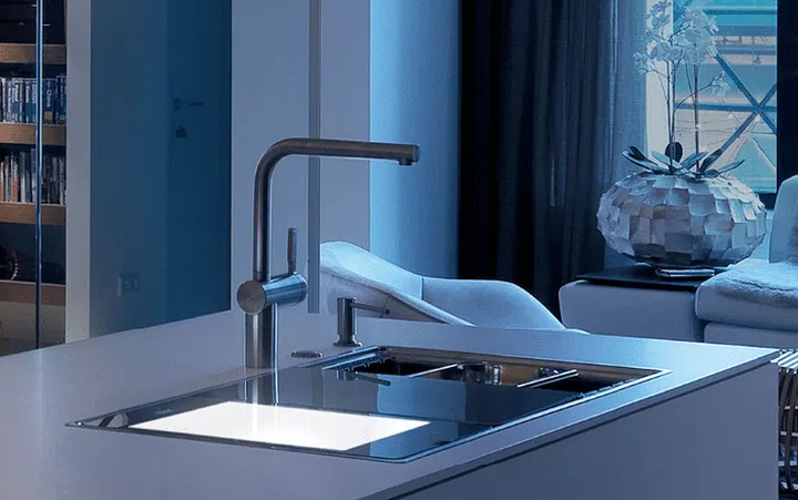 This handy kitchen accessory by Swiss kitchen brand Franke combines form and function. Use it during food preparation, as a kitchen weight or a chopping board; it fits perfectly over the bowl of a Franke sink for extra countertop space. This battery-operated and water-resistant tool also comes with lighting in various colours, so you can create ambient illumination in the kitchen.