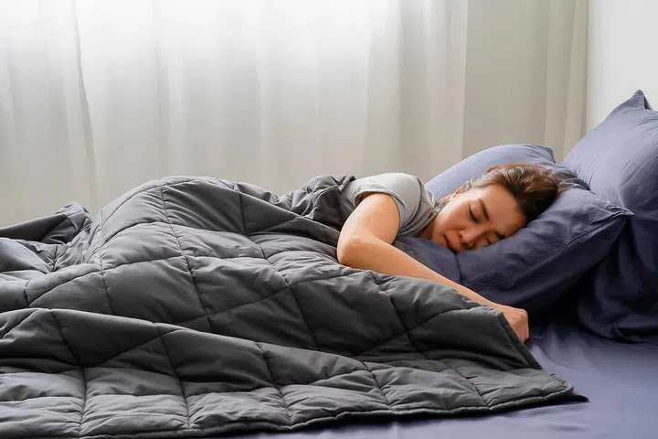 A blanket with additional weight provides a deep touch pressure that makes falling asleep easy and helps you feel
