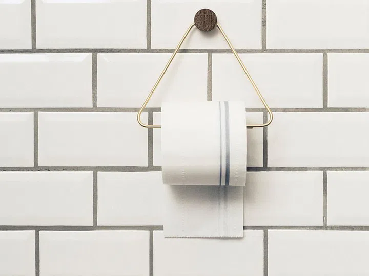 Grab the Ferm Living brass toilet paper holder here.
