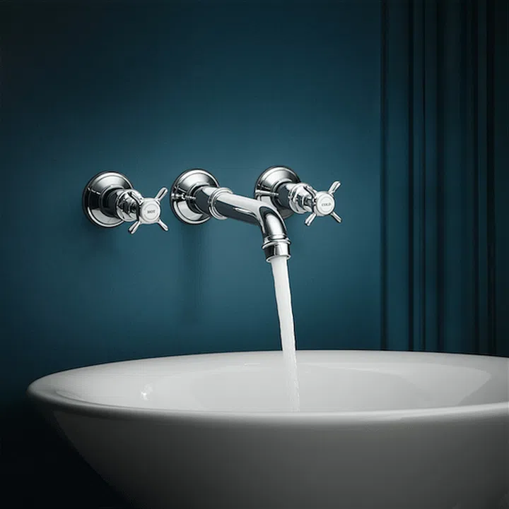 Industrial design elements, such as pipes and valves, were not only combined with classical details, like cross handles, but also with contemporary lever handles, to give it a sophisticated touch.