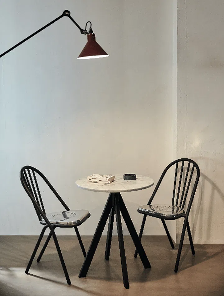 Perfect even for small apartments, the DCW Surpil chairs, designed by French designer Julien- Henri Porche, come with powder-coated steel frames with seats of contrasting colours like natural or stain walnut, and stainless steel. More information about the store here.