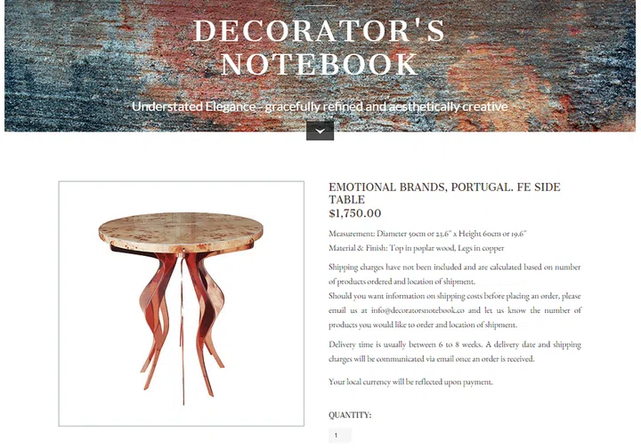 Decorator’s Notebook sells a collection of globally sourced handmade items. It is founded by freelance interior stylist Priti Devi. Visit www.decoratorsnotebook.co.