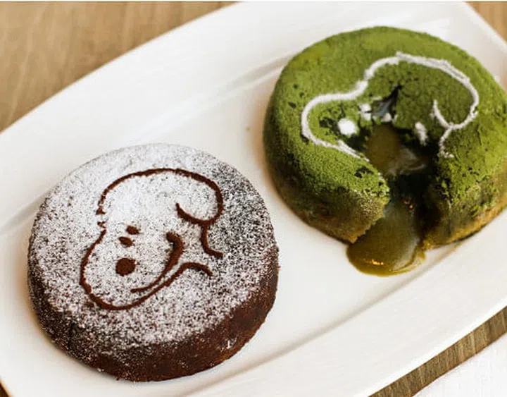 Some signature dishes include the Honey Grilled Chicken ($14) and the Beef Risotto ($14). And for dessert, the chocolate and matcha lava cakes ($7) which come decorated with a drawing of Snoopy, Charlie Brown's pet beagle.