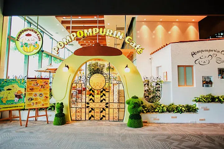 The cafe is named after the Sanrio character Pompompurin, a golden retriever that has been nominated twice as the most popular character by Strawberry News, a magazine published by Sanrio.
