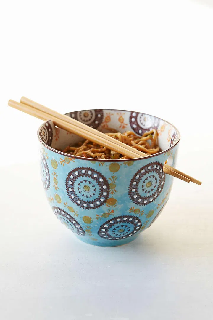 This ceramic bowl, which comes with a chopstick holder, is a must-have for lovers of the Asian cuisine. It's the Medallion Noodle Chopsticks + Bowl from Urban Outfitters.