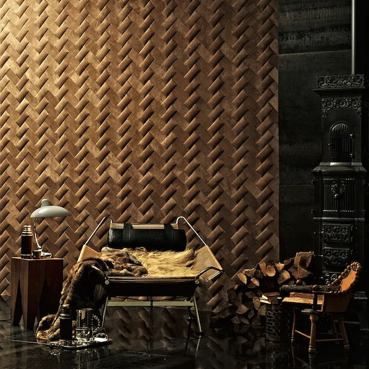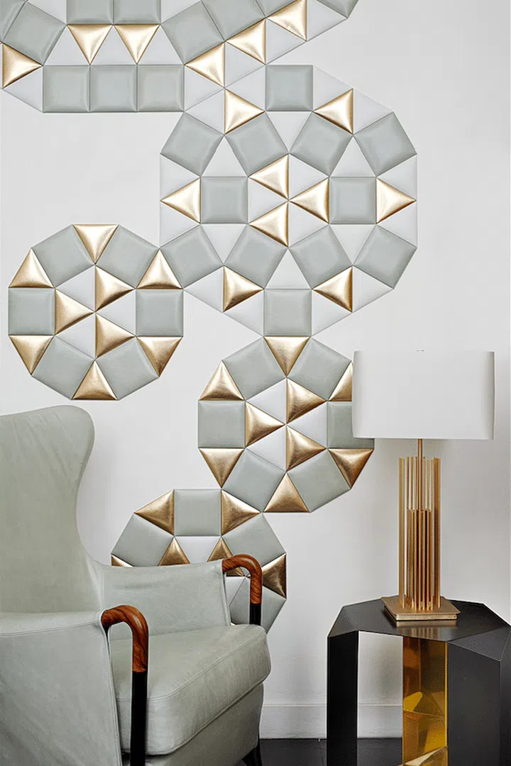 With a range of materials including leather, fabric and linen, you can achieve a 3-D, textural effect for your walls. Some in the selection come with embossed designs, which is an unconventional take on wallcoverings — like Studioart Watersuede leather collection, from Tatum. (pictured)