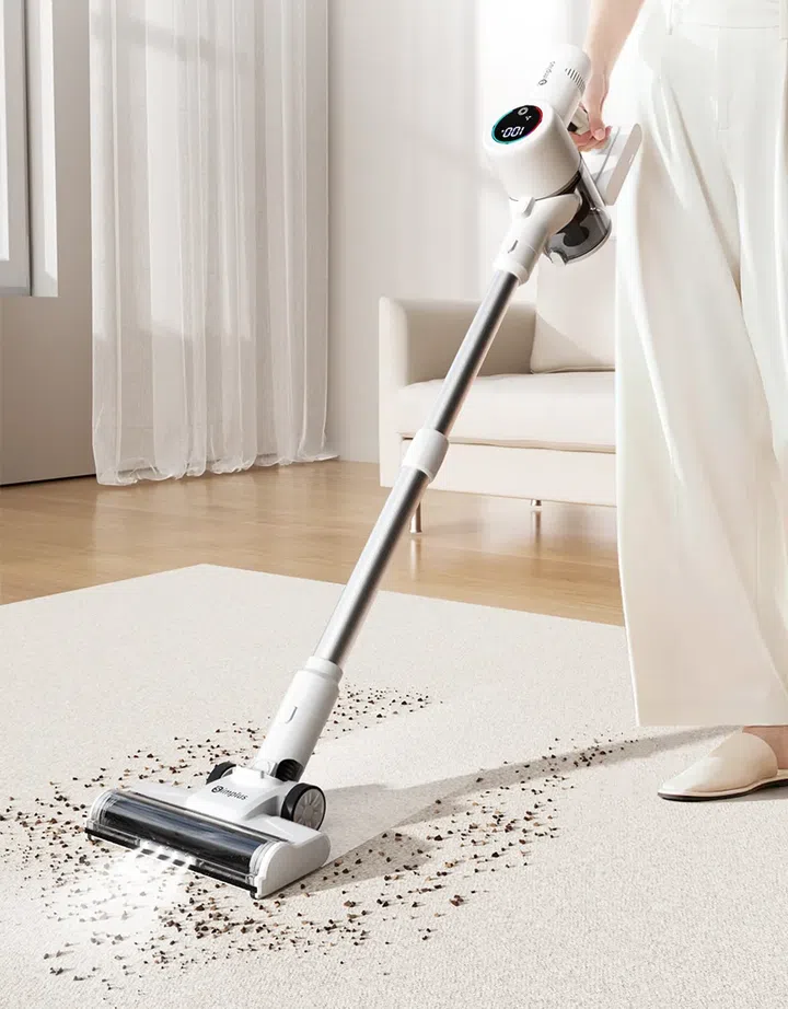 On a budget but still want something that looks and feels like a legit vacuum? The Simplus Cordless Vacuum is a solid contender. With 16,000Pa of suction power and a 5-layer HEPA filtration system, it’s got more cleaning muscle than you’d expect at this price point. It picks up dust, crumbs, and even fine hair surprisingly well — perfect for studio apartments, student rooms, or secondary vacuums in larger homes.
