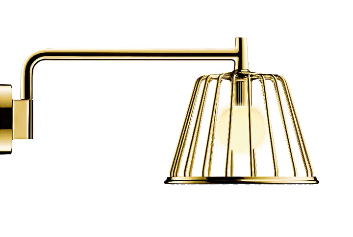 Starting from the idea that the bathroom could open on to the living room, the creation is neither a lamp nor a shower, but a hybrid, where water jets emerge from the rim of the lampshade.
