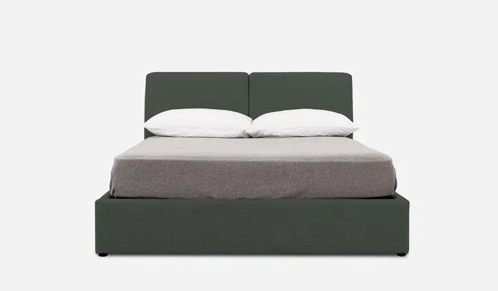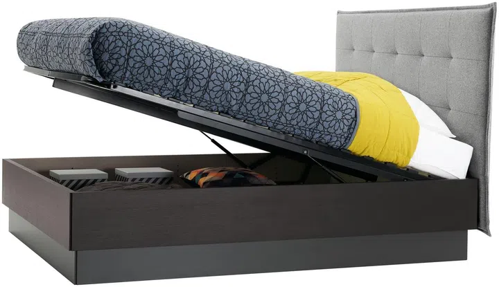 The Todd queen-size bed features a fully padded and upholstered headboard, and ample storage below (accessible via hydraulic lift), too.