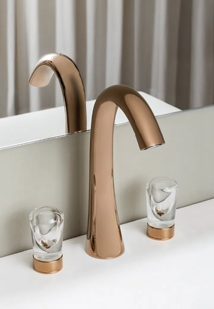 A visit to a French wine chateau not only gave designer Sybille de Margerie a lesson on winemaking, but ideas for her next bathware collection, too. The image of delicate glass stoppers that sat atop rows of wooden barrels was transformed into a contemporary range of round crystal faucets. With serenity and femininity in mind, she chose a rose-gold finish to mimic the sensuality of skin, and a black matte and pure crystal combination as a modern design for wellness resorts.