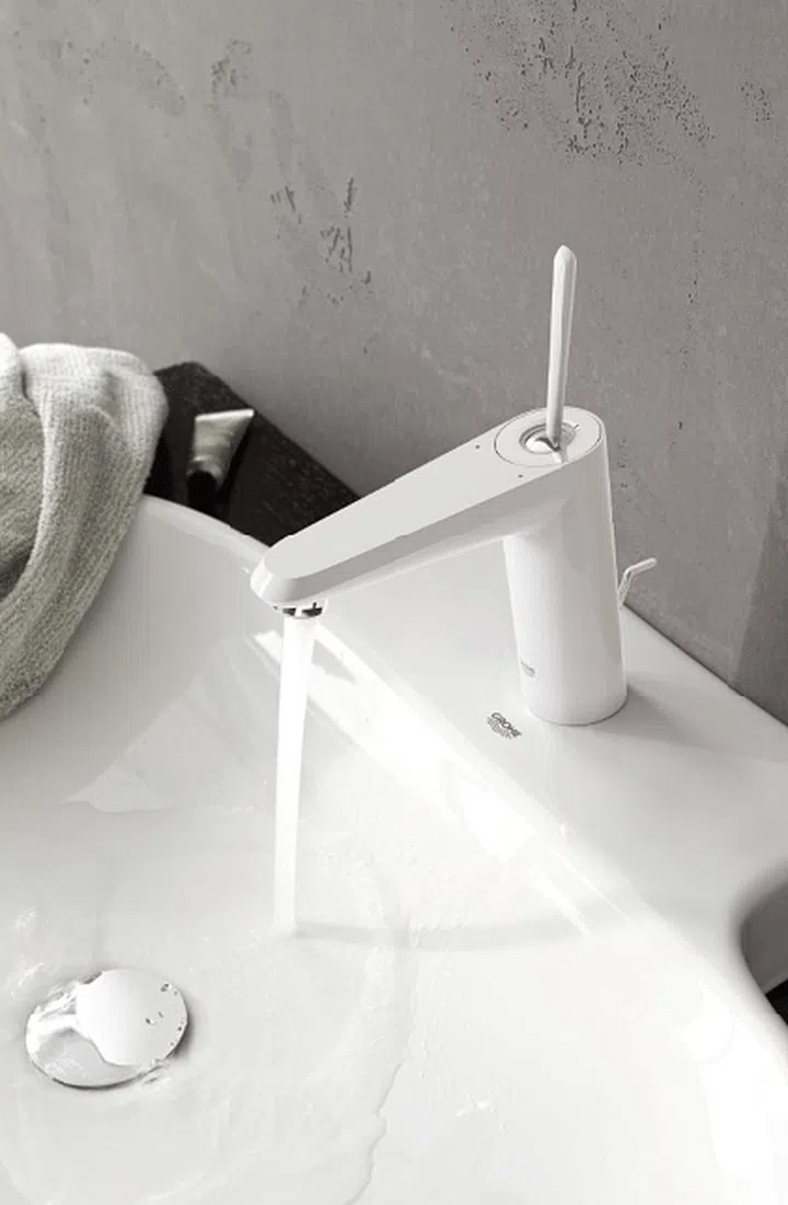 designed for interaction. Its playful yet futuristic looks are combined with high functionality; the adjustable joystick allows for meticulous precision in volume and temperature, while the Grohe Ecojoy water-saving technology encourages a sustainable and responsible consumption of water