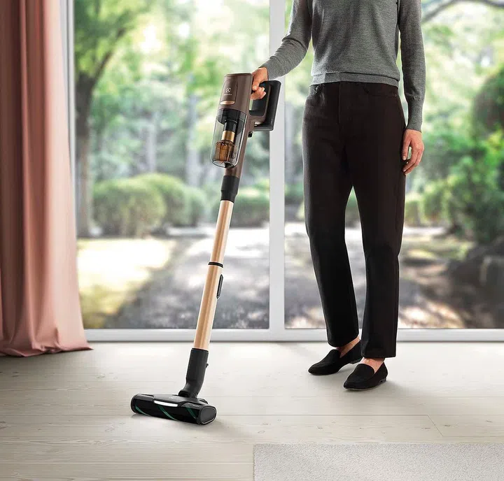 Appliances with multiple functions save space in small homes. This stick vacuum cleaner will help you save time, too. It lets you mop floors with rotating cleaning pads after vacuuming. Besides the high suction power for deep cleaning, its advanced five-step filtration removes 99.99 per cent of microdust particles from your indoor air as you vacuum.