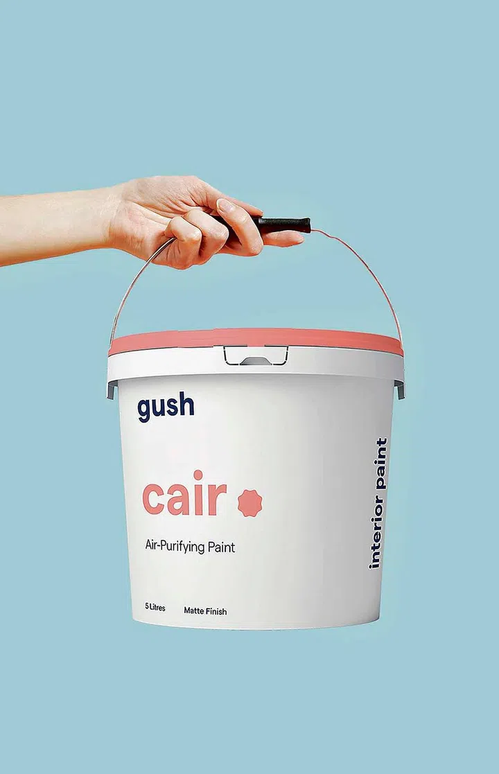 What if your walls could purify the air? Cair interior paint products, a brainchild of Singapore company Gush, are free of VOCs. By using a proprietary catalyst, they break down indoor pollutants into water and carbon dioxide. In addition, the paint material can regulate humidity by absorbing moisture into the surface when it is humid, and releasing it when the air is too dry.