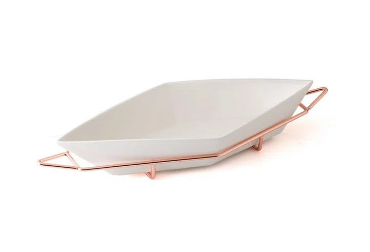 Uniquely diamond-shaped, this serving plate is perfect for holiday parties.
